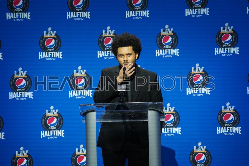 Tampa, Florida, USA, February 4, 2021, The Weeknd answers questions from the press during the Super Bowl LV Half Time Show Press Conference (Photo Credit: Marty Jean-Louis)