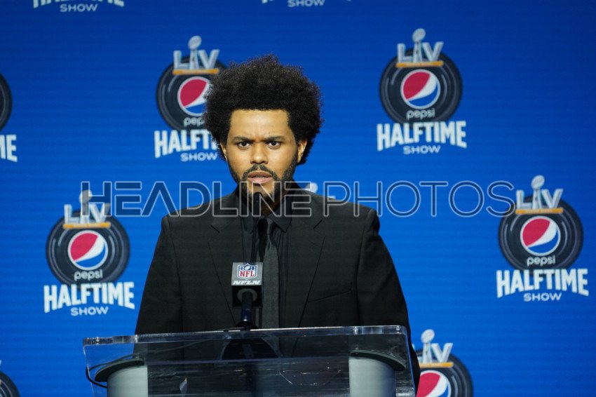Tampa, Florida, USA, February 4, 2021, The Weeknd answers questions from the press during the Super Bowl LV Half Time Show Press Conference (Photo Credit: Marty Jean-Louis)