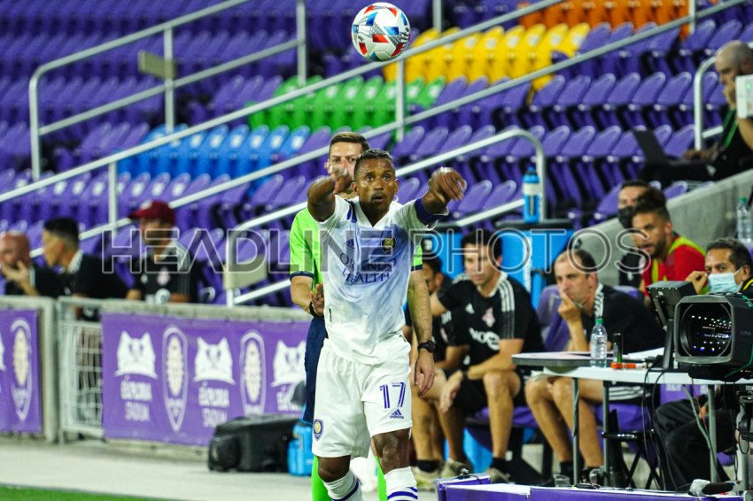 Orlando, Florida, USA, June 19, 2021, Orlando City SC forward Luis Nani #17 throws the ball to teammate at Exploria Stadium. (Photo Credit: Marty Jean-Louis)