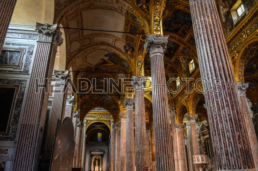 genoa italy (june 10 2018) ancient art building catholic ceiling church colum deco gold interior old place texture worshipSimilar Photos