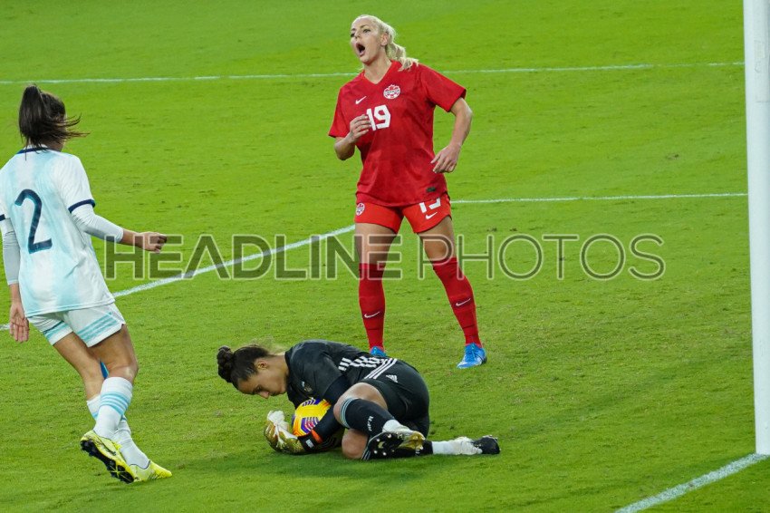Orlando, Florida, USA, February 21, 2021, Argentinian Goalkeeper Stephanie Labbe #1 makes a save during the SheBelieves Cup at Exploria Stadium (Photo Credit: Marty Jean-Louis)