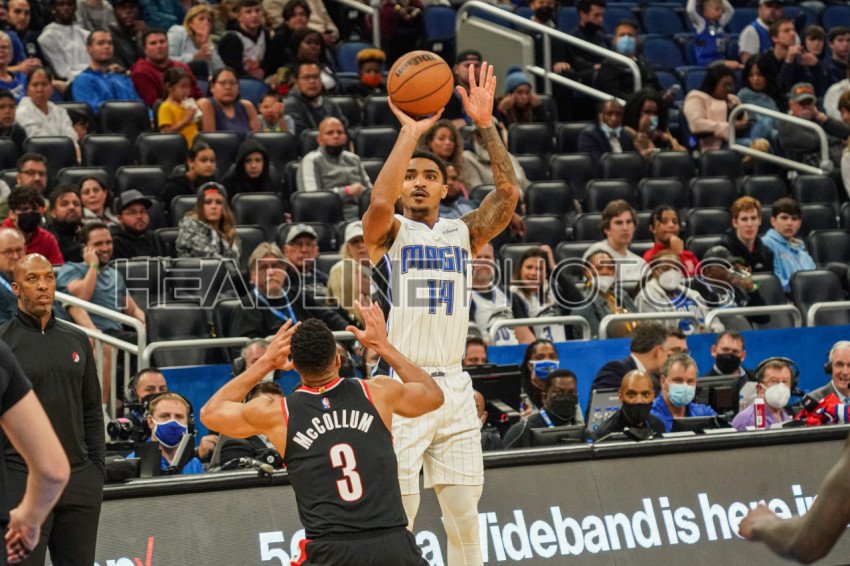 Orlando, Florida, USA, January 17, 2022, Orlando Magic Guard Gary Harris #14 shoots a three point during the 4th quarter at the Amway Center. (Photo Credit: Marty Jean-Louis)