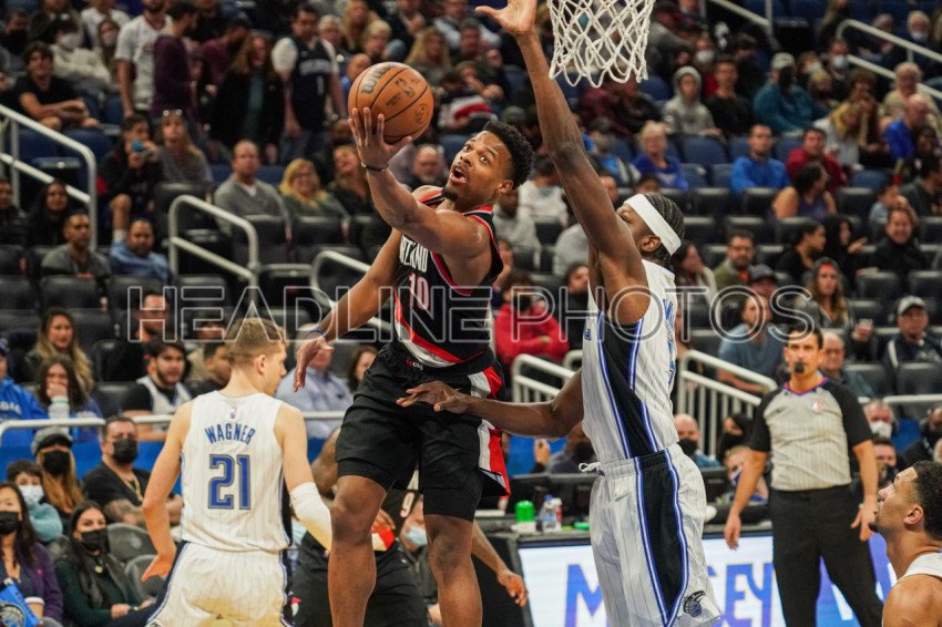 Orlando, Florida, USA, January 17, 2022, Portland Trail Blazers Guard Dennis Smith Jr #10 attempt to make a basket against the Orlando Magic at the Amway Center. (Photo Credit: Marty Jean-Louis)