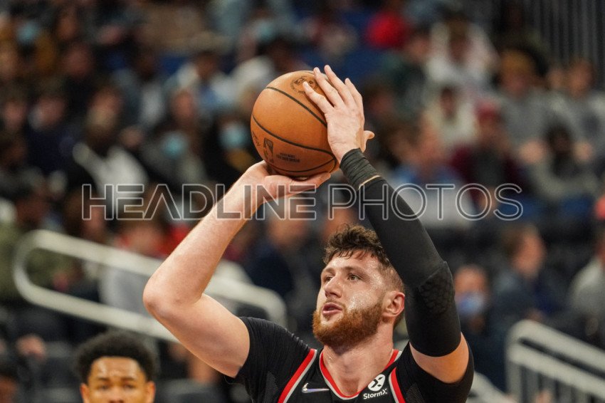 Orlando, Florida, USA, January 17, 2022, Portland Trail Blazers Center Jusuf Nurkic #27 shoots a free throw at the Amway Center. (Photo Credit: Marty Jean-Louis)