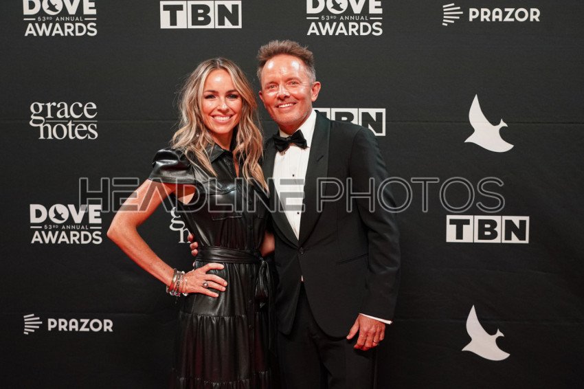 Nashville, Tennessee, USA, October 18, 2022. Chris Tomlin and his wife on the Red Carpet during the 53nd Annual GMA Dove Awards at Lipscomb University in Nashville, Tennessee, USA.