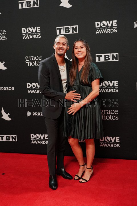 Nashville, Tennessee, USA, October 18, 2022. Ryan Ellis and his wife on the Red Carpet during the 53nd Annual GMA Dove Awards at Lipscomb University in Nashville, Tennessee, USA.