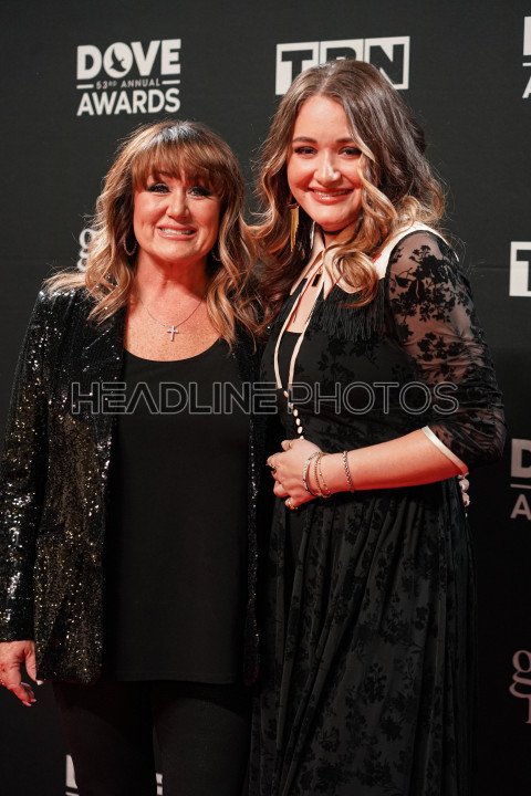 Nashville, Tennessee, USA, October 18, 2022. Kim Hopper and Karlye Hopper on the Red Carpet during the 53nd Annual GMA Dove Awards at Lipscomb University in Nashville, Tennessee, USA.