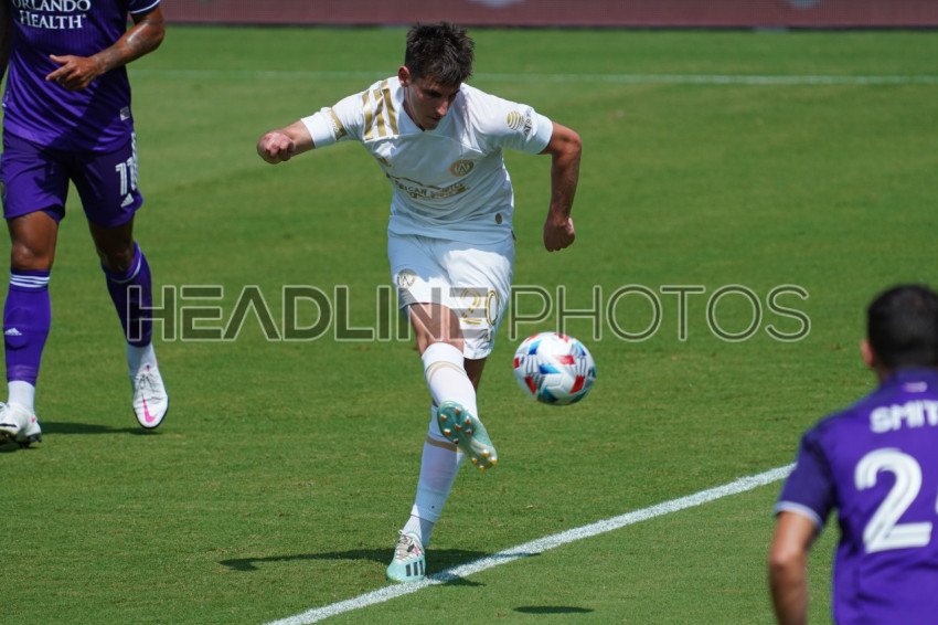 Orlando, Florida, USA, April 17, 2021, Atlanta United FC Midfielder Emerson Hyndman #20 makes a kick towards the goal at Exploria Stadium in Orlando Florida, USA (Photo Credit: Marty Jean-Louis)