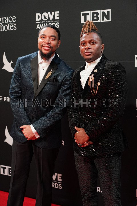 Nashville, Tennessee, USA, October 18, 2022. Jonathan Anderson and Lawrence Flowers on the Red Carpet during the 53nd Annual GMA Dove Awards at Lipscomb University in Nashville, Tennessee, USA.