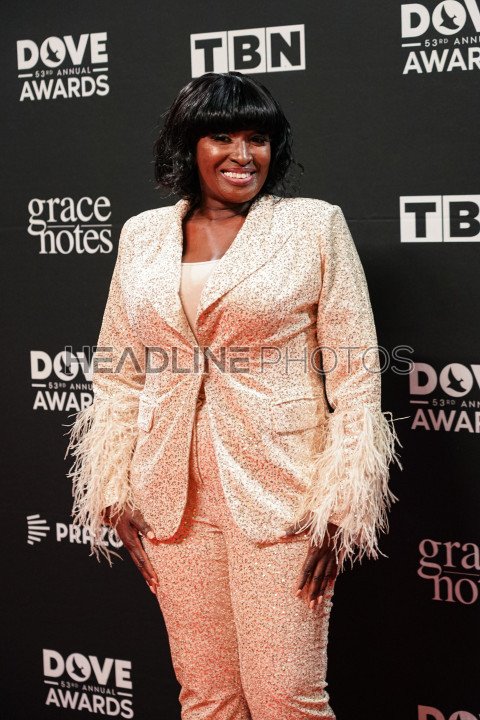 Nashville, Tennessee, USA, October 18, 2022. Lucinda Moore on the Red Carpet during the 53nd Annual GMA Dove Awards at Lipscomb University in Nashville, Tennessee, USA.