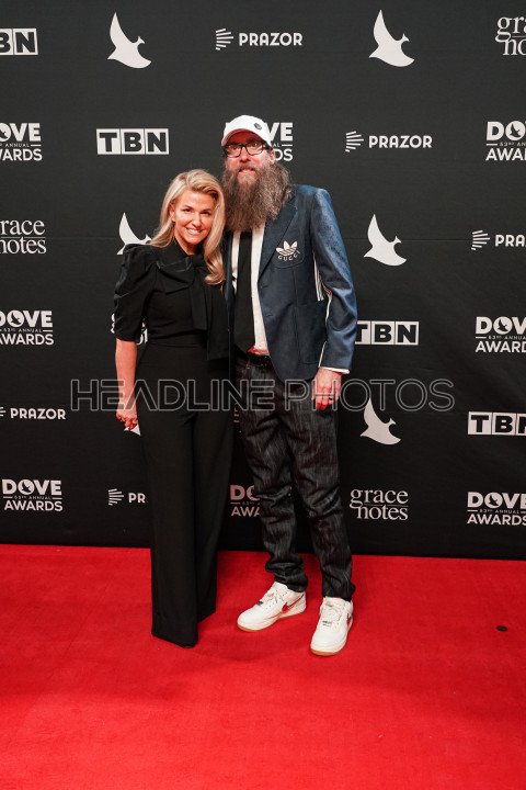Nashville, Tennessee, USA, October 18, 2022. David Crowder and his wife on the Red Carpet during the 53nd Annual GMA Dove Awards at Lipscomb University in Nashville, Tennessee, USA.