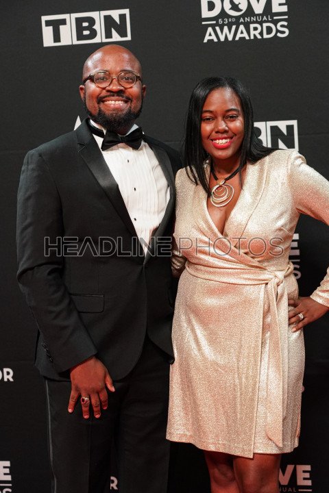 Nashville, Tennessee, USA, October 18, 2022. Gabby & Andrew Wilkes on the Red Carpet during the 53nd Annual GMA Dove Awards at Lipscomb University in Nashville, Tennessee, USA.