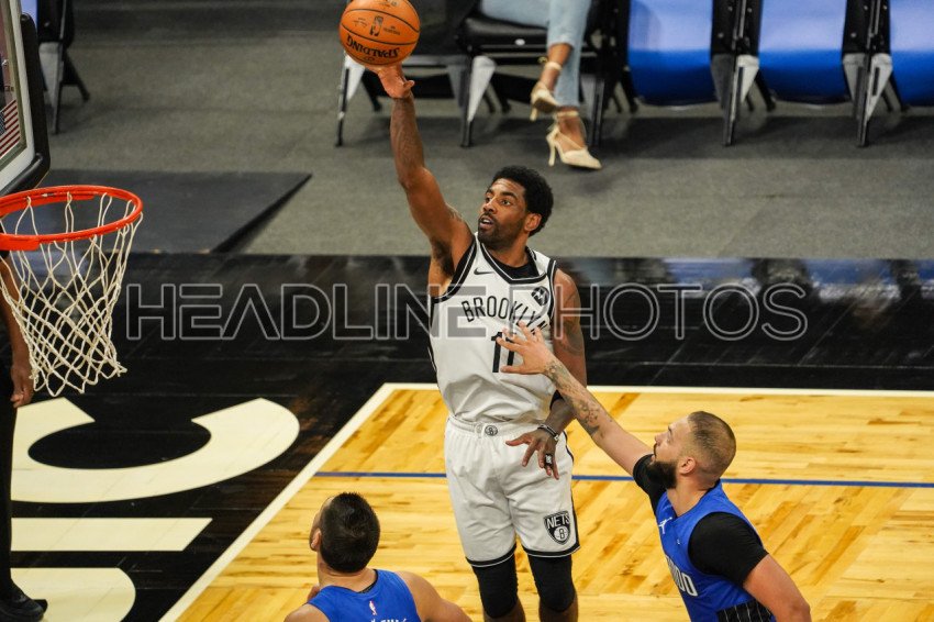 Orlando, Florida, USA, March 19, 2021, Brooklyn Nets Point Guard Kyrie Irving #11 attempt to make a basket against the Orlando Magic at the Amway Center (Photo Credit: Marty Jean-Louis)
