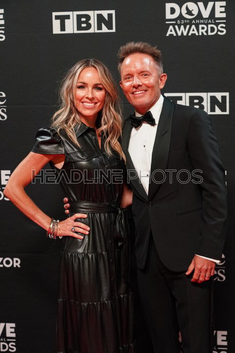 Nashville, Tennessee, USA, October 18, 2022. Chris Tomlin and his wife on the Red Carpet during the 53nd Annual GMA Dove Awards at Lipscomb University in Nashville, Tennessee, USA.
