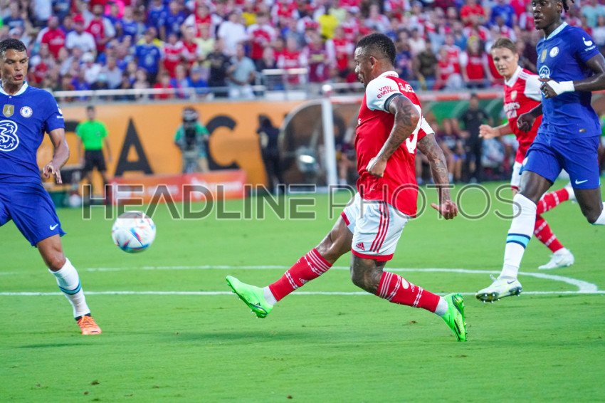Orlando, Florida, USA, July 23, 2022, Arsenal FC player Gabriel Jesus #9 shoots and scores against Chelsea at Camping World Stadium in a Friendly Match. (Photo Credit: Marty Jean-Louis)