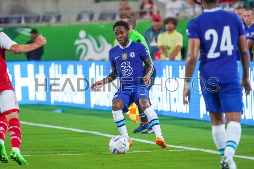 Orlando, Florida, USA, July 23, 2022, Chelsea player Raheem Sterling #17 controls the ball during the first half at Camping World Stadium in a Friendly Match. (Photo Credit: Marty Jean-Louis)