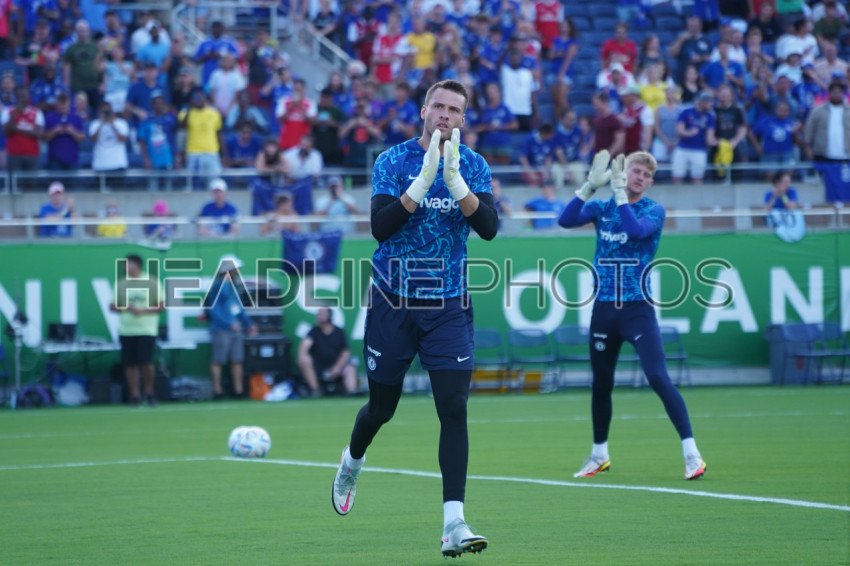 Orlando, Florida, USA, July 23, 2022, Chelsea goalkeepers Marcus Bettinelli and Teddy Sharman-Lowe arrives for warmup at Camping World Stadium in a Friendly Match. (Photo Credit: Marty Jean-Louis)