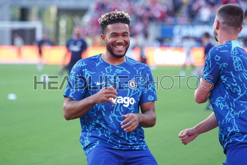 Orlando, Florida, USA, July 23, 2022, Chelsea defender Reece James smiles during warmup at Camping World Stadium in a Friendly Match. (Photo Credit: Marty Jean-Louis)