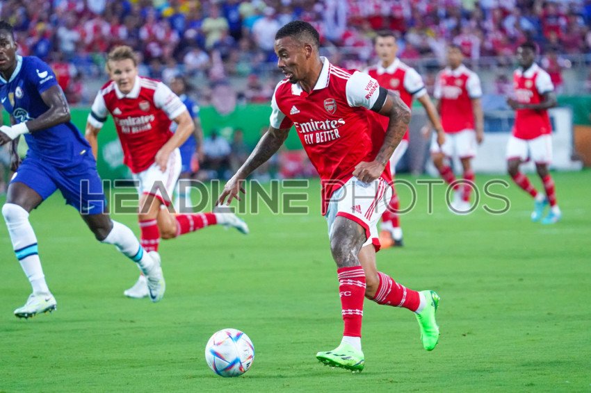 Orlando, Florida, USA, July 23, 2022, Arsenal FC player Gabriel Jesus #9 attempt to score against Chelsea at Camping World Stadium in a Friendly Match. (Photo Credit: Marty Jean-Louis)