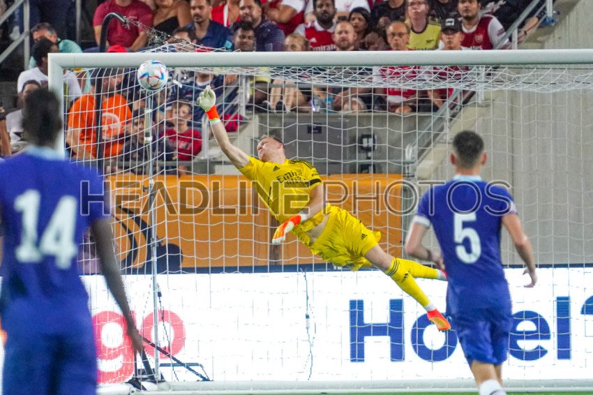 Orlando, Florida, USA, July 23, 2022, Arsenal FC goalkeeper Aaron Ramsdale #32 makes a save at Camping World Stadium in a Friendly Match. (Photo Credit: Marty Jean-Louis)