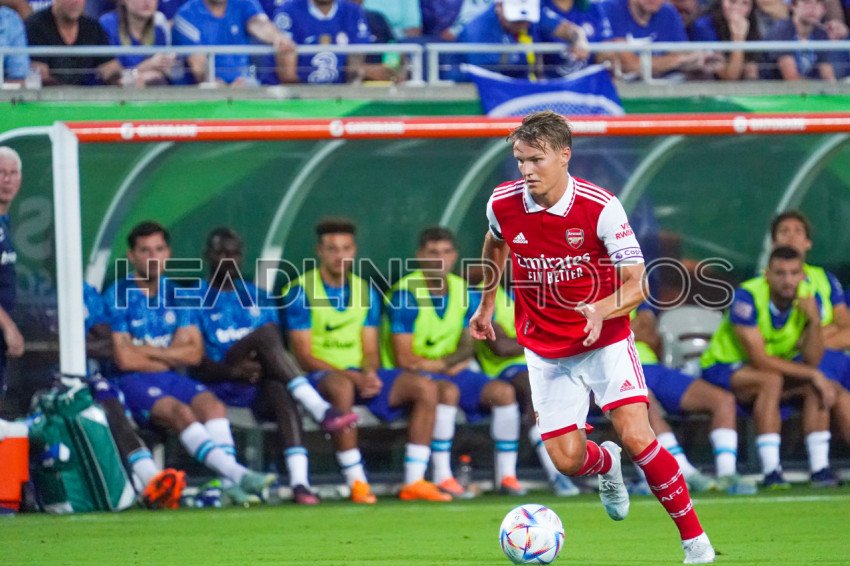 Orlando, Florida, USA, July 23, 2022, Arsenal FC player Martin Odegaard #8 runs up field at Camping World Stadium in a Friendly Match. (Photo Credit: Marty Jean-Louis)