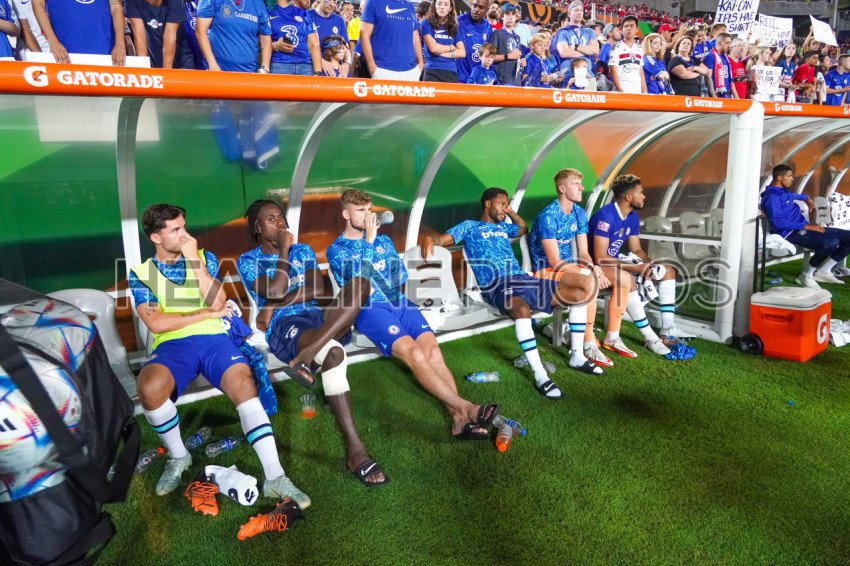 Orlando, Florida, USA, July 23, 2022, Chelsea players sit at the end of the match at Camping World Stadium in a Friendly Match. (Photo Credit: Marty Jean-Louis)
