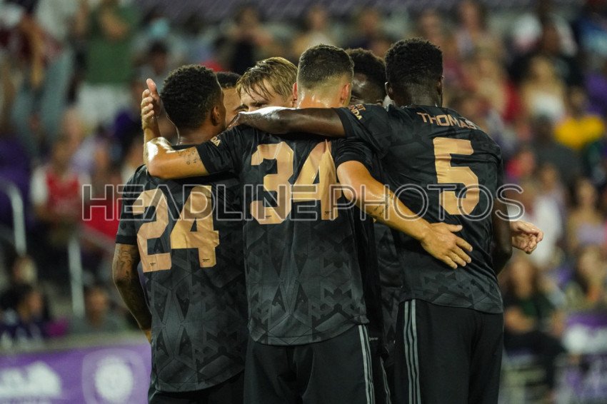 Orlando, Florida, USA, July 20, 2022, Arsenal FC players celebrate goal against Orlando City at Exploria Stadium in a Friendly Match. (Photo Credit: Marty Jean-Louis)