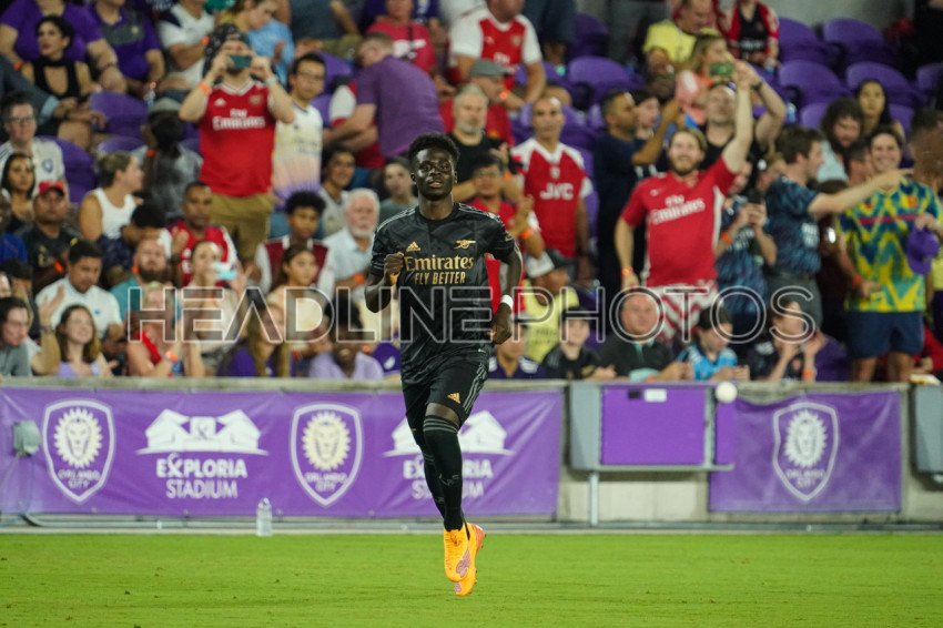 Orlando, Florida, USA, July 20, 2022, Arsenal FC player Bukayo Saka #7 enters the pitch in the second half at Exploria Stadium in a Friendly Match. (Photo Credit: Marty Jean-Louis)