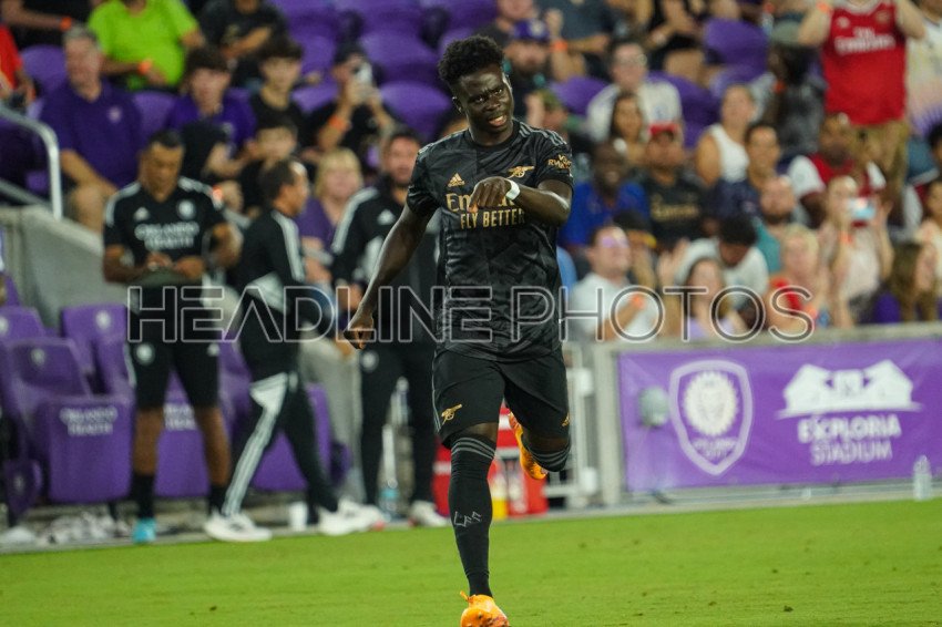 Orlando, Florida, USA, July 20, 2022, Arsenal FC player Bukayo Saka #7 enters the pitch in the second half at Exploria Stadium in a Friendly Match. (Photo Credit: Marty Jean-Louis)
