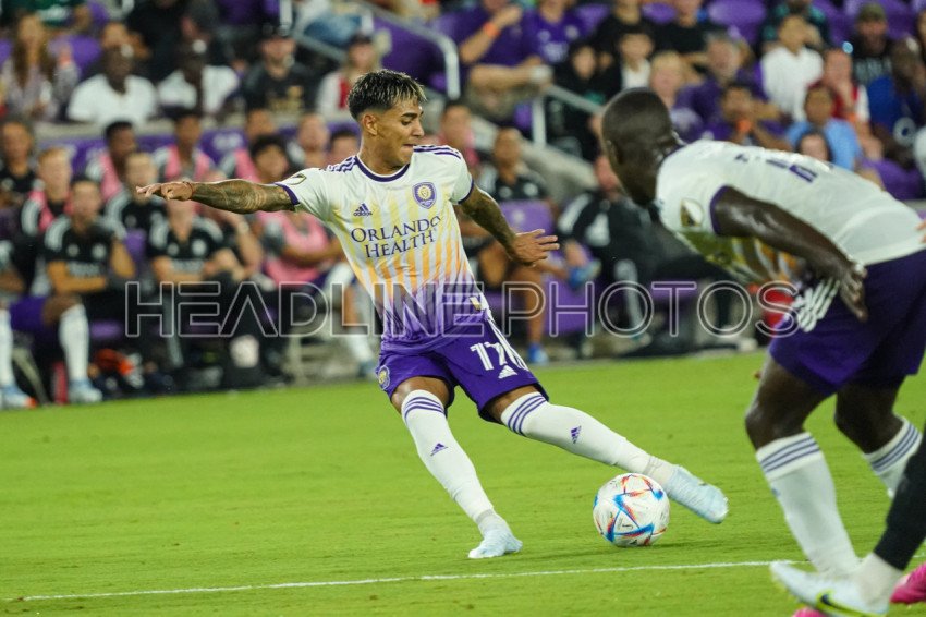 Orlando, Florida, USA, July 20, 2022, Orlando City Forward Facundo Torres #17 takes a shot resulting in goal during the first half at Exploria Stadium in a Friendly Match. (Photo Credit: Marty Jean-Louis)