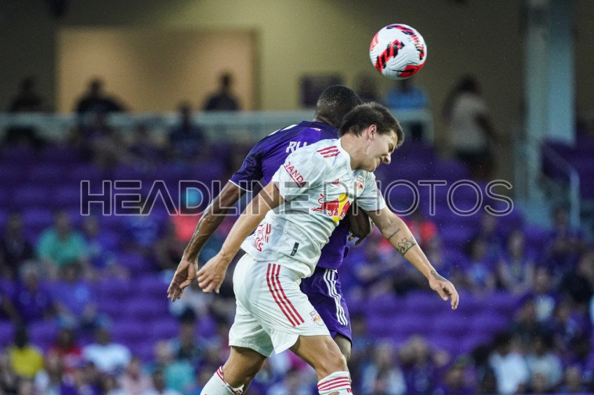 Orlando, Florida, USA, July 27, 2022, New York Red Bulls player John Tolkin #47 and Orlando City SC defender Ruan #2 fight for the header during the US Open Cup Semi Finals at Exploria Stadium. (Photo Credit: Marty Jean-Louis)