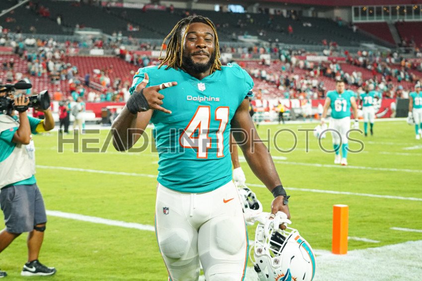 Tampa Bay, Florida, USA, August 13, 2022, Miami Dolphins linebacker Darius Hodge #41 celebrate after defeating the Tampa Bay Buccaneers at Raymond James Stadium. (Photo Credit: Marty Jean-Louis)