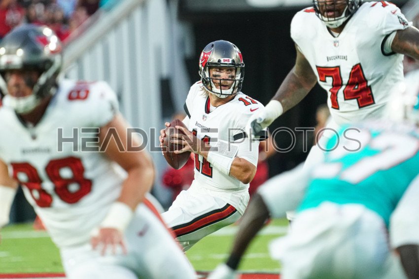 Tampa Bay, Florida, USA, August 13, 2022, Tampa Bay Buccaneers Quarterback Blaine Gabbert #11 looks to make a pass at Raymond James Stadium. (Photo Credit: Marty Jean-Louis)