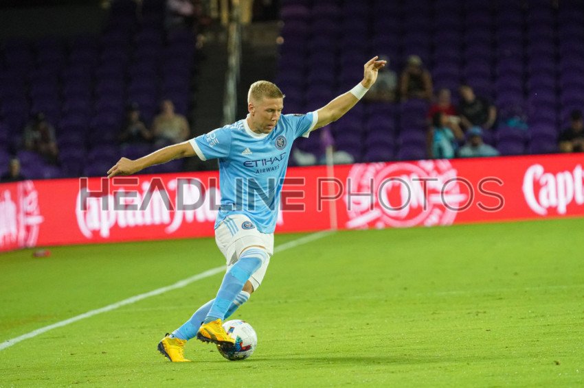 Orlando, Florida, USA, August 28, 2022, New York City FC defender Anton Tinnerholm #3 receives a pass at Exploria Stadium. (Photo Credit: Marty Jean-Louis)