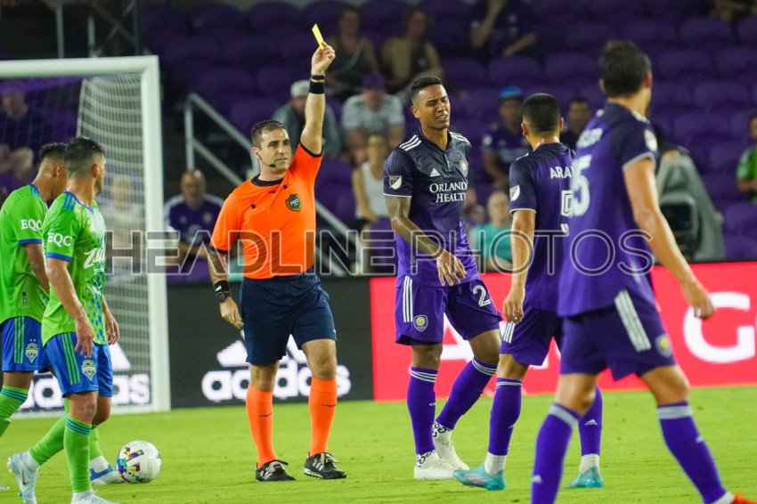 Orlando, Florida, USA, August 31, 2022, Orlando City SC defender Antonio Carlos #25 gets a yellow card in the second half at Exploria Stadium. (Photo Credit: Marty Jean-Louis)