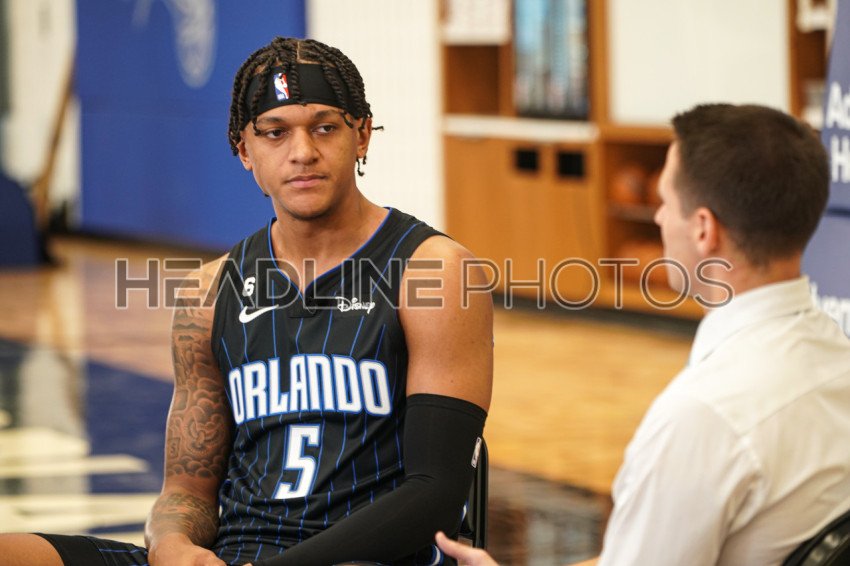 Orlando, Florida, USA, September 26, 2022, Paolo Banchero #5 being interviewed during the 2022 Orlando Magic Media Day at the Advent Health Training Center. (Photo Credit: Marty Jean-Louis)