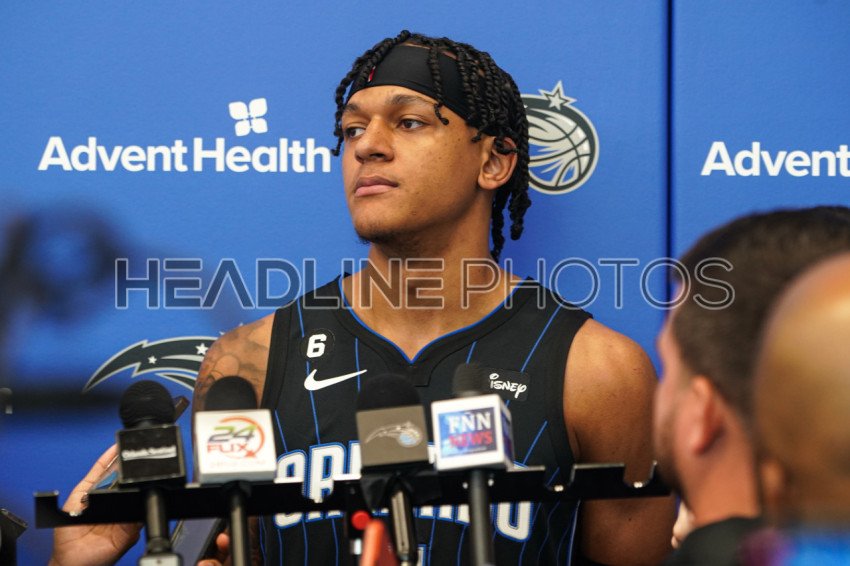 Orlando, Florida, USA, September 26, 2022, Paolo Banchero #5 at a press conference during the 2022 Orlando Magic Media Day at the Advent Health Training Center. (Photo Credit: Marty Jean-Louis)