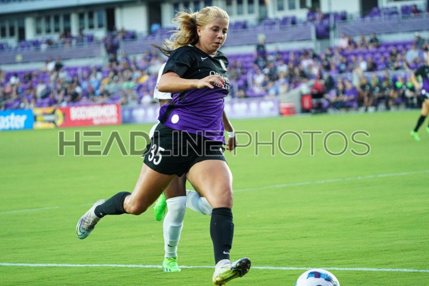 Orlando, Florida, USA, September 25, 2022, Orlando Pride forward Leah Pruitt #35 readies to make a pass near the box in the first half at Exploria Stadium. (Photo Credit: Marty Jean-Louis)