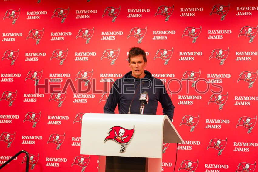 Tampa Bay, Florida, USA, October 9, 2022, Tampa Bay Buccaneers Quarterback Tom Brady #12 speaking at a press conference after the game at Raymond James Stadium. (Photo Credit: Marty Jean-Louis)