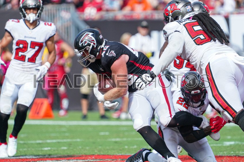 Tampa Bay, Florida, USA, October 9, 2022, Atlanta Falcons Tight End Parker Hesse #46 gets tackled in the 3rd quarter at Raymond James Stadium. (Photo Credit: Marty Jean-Louis)