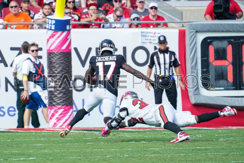 Tampa Bay, Florida, USA, October 9, 2022, Atlanta Falcons Wide receiver Olamide Zaccheaus #17 makes a touch down at Raymond James Stadium. (Photo Credit: Marty Jean-Louis)