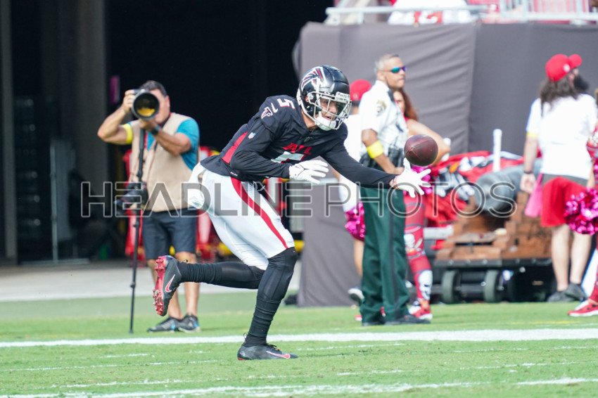 Tampa Bay, Florida, USA, October 9, 2022, Atlanta Falcons wide receiver Drake London #5 attempt to get a pass during the 3rd quarter at Raymond James Stadium. (Photo Credit: Marty Jean-Louis)