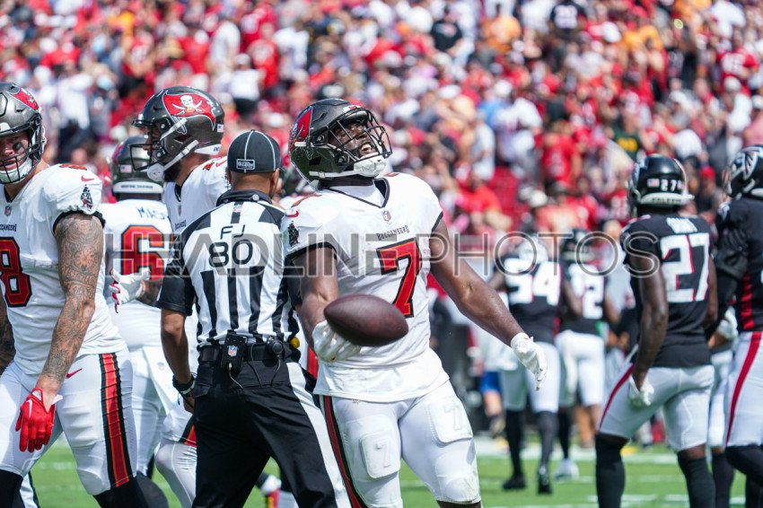 Tampa Bay, Florida, USA, October 9, 2022, Tampa Bay Buccaneers running back \nLeonard Fournette #7 smiles after making a touchdown at Raymond James Stadium. (Photo Credit: Marty Jean-Louis)