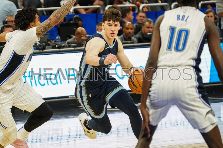 Orlando, Florida, USA, October 11, 2022, Memphis Grizzlies forward Jake LaRavia #3 controls the ball as he moves forward towards the basket at the Amway Center. (Photo Credit: Marty Jean-Louis)
