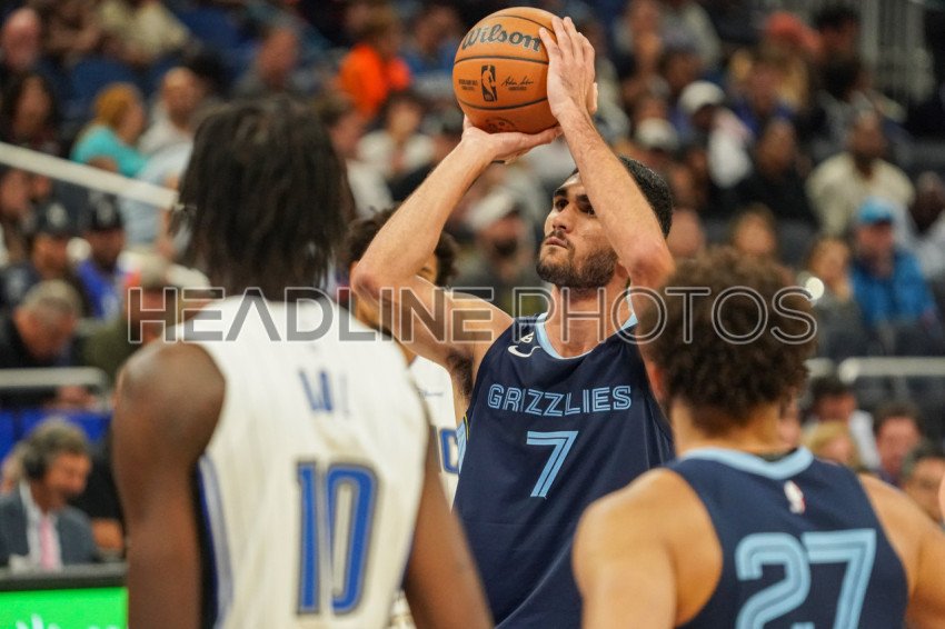 Orlando, Florida, USA, October 11, 2022, Memphis Grizzlies Power Forward Santi Aldama #7 shoots a free throw during the second half at the Amway Center. (Photo Credit: Marty Jean-Louis)