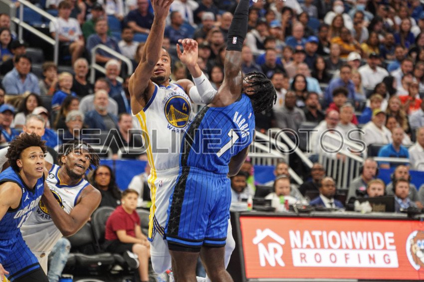 Orlando, Florida, USA, November 3, 2022, Golden State Warriors forward Moses Moody #4 attempt to make a basket during the first half at the Amway Center. (Photo Credit: Marty Jean-Louis)