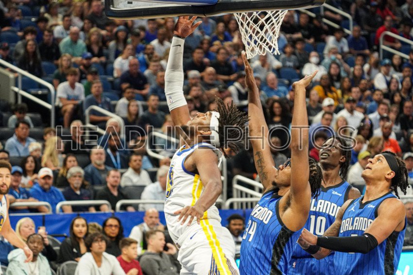 Orlando, Florida, USA, November 3, 2022, Golden State Warriors Center Kevon Looney #5 attempt to make a basket in the first half at the Amway Center. (Photo Credit: Marty Jean-Louis)