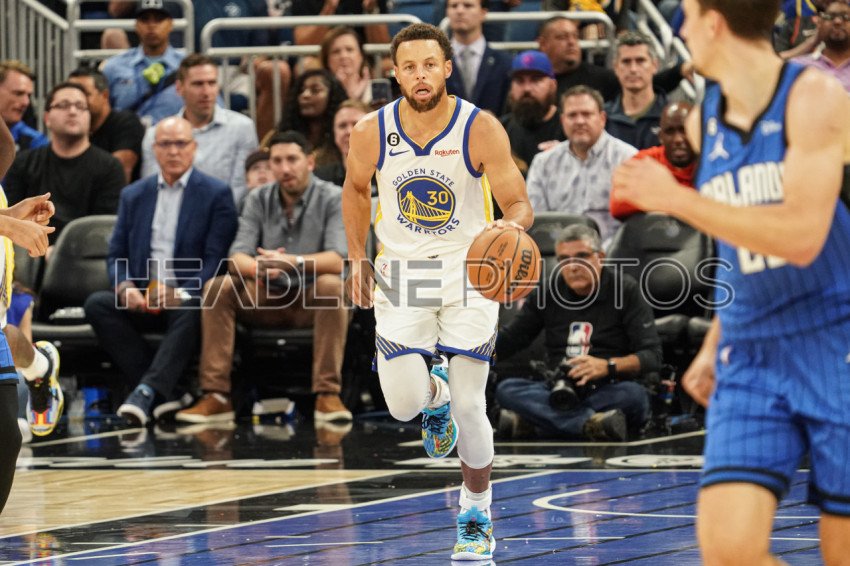 Orlando, Florida, USA, November 3, 2022, Golden State Warriors Guard Stephen Curry dribbles the ball forward during the first half at the Amway Center. (Photo Credit: Marty Jean-Louis)