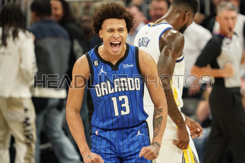 Orlando, Florida, USA, November 3, 2022, Orlando Magic Guard RJ Hampton #13 reacts after making a three point shot against Golden State Warriors in the second half at the Amway Center. (Photo Credit: Marty Jean-Louis)