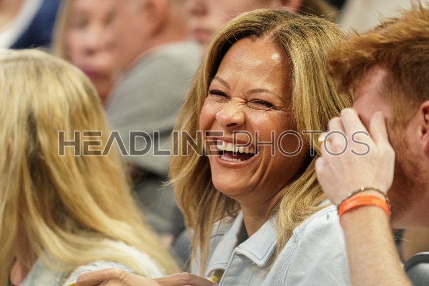 Orlando, Florida, USA, November 3, 2022, Steph Curry's Mother Sonya Curry laughs with a friend during the Golden State Warriors vs Orlando Magic at the Amway Center. (Photo Credit: Marty Jean-Louis)